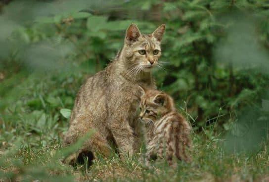 The forest cat carries cubs for about 70 days. Usually 3-5 babies are born. At the time of birth, they are blind and helpless. The weight of the newborn is 40 g. Vision appears only on the 9th or 12th day. Incisors appear in two weeks, milk teeth are replaced by molars already on the 160th day.